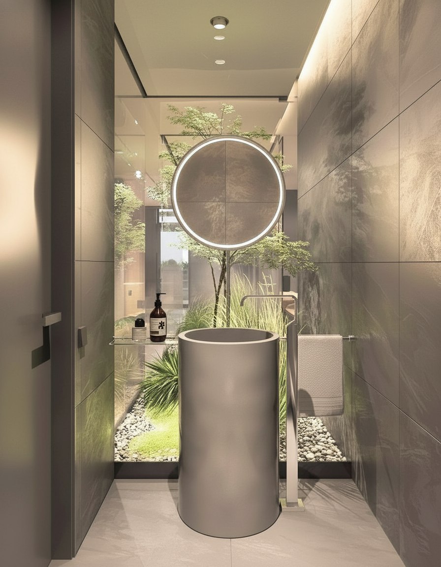 Щелевая раковина с фартуком из фибробетона по размерам заказчика